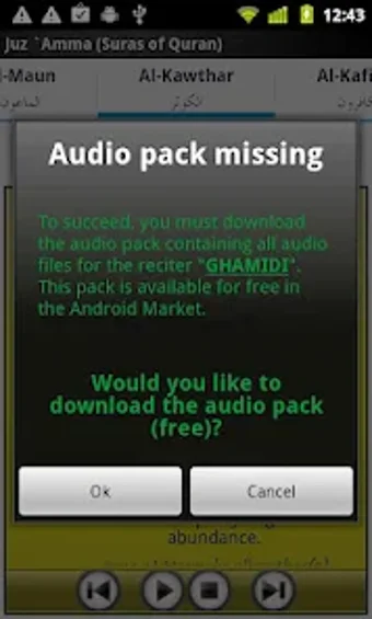 لكي يتمكن المستخدمون من استخدام هذه الحزمة، يجب عليهم تثبيت تطبيق "جزء عمّ" أولاً. حزمة الصوت الغامدي مجانية تمامًا ويمكن تنزيلها من متجر جوجل بلاي. إذا واجه المستخدمون أي مشاكل أثناء استخدام هذه الحزمة، يمكنهم التواصل مع المطور عبر البريد الإلكتروني.